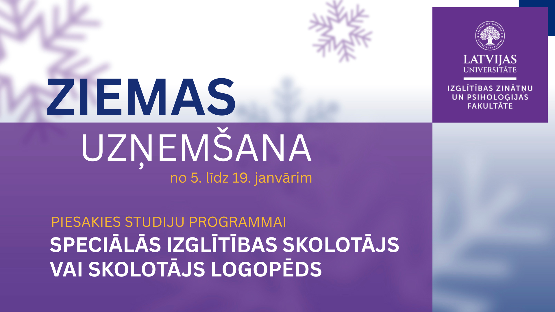 Sākusies ziemas uzņemšana trīs pedagoģijas studiju programmās