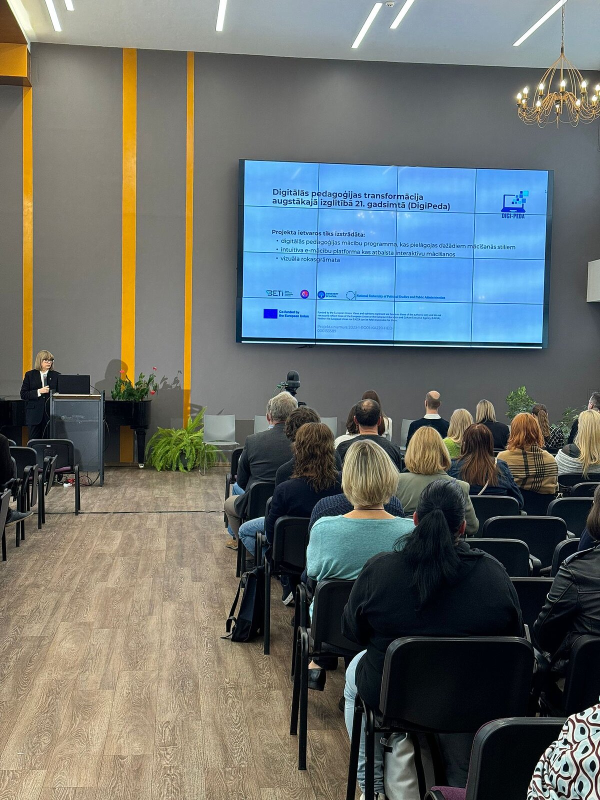 Pirmajā daļā IZPF pētnieku komanda iepazīstināja ar projektu "DigiPeda" jeb “Digitālās pedagoģijas transformācija augstākajā izglītībā 21. gadsimtā”. Projekta mērķis ir attīstīt digitālās pedagoģijas kompetences augstskolu studentu vidū un veicināt inovatīvu pieeju mācību procesā. Lai to īstenotu, tiek plānota vairāku praktisku rīku izstrāde, kas palīdzēs gan studentiem, gan akadēmiskajam personālam: 1) Digitālās pedagoģijas mācību programma – elastīga un pielāgojama dažādiem mācīšanās stiliem, lai uzlabotu studentu digitālās prasmes un paaugstinātu mācību efektivitāti. 2) Intuitīva e-mācību platforma – interaktīvs digitālais rīks, kas ļaus studentiem un mācībspēkiem efektīvi izmantot tehnoloģijas mācību procesā, veicinot sadarbību un zināšanu apguvi dažādos formātos. 3) Vizuāla rokasgrāmata – praktisks ceļvedis, kas palīdzēs studentiem un pasniedzējiem veiksmīgi orientēties digitālajā mācību vidē, sniedzot konkrētus padomus un ieteikumus efektīvai mācīšanās stratēģijai, kas nākotnē ar teorētiskām un praktiskām zināšanām spēs atbalstīt pedagogus un izglītības jomas profesionāļus.