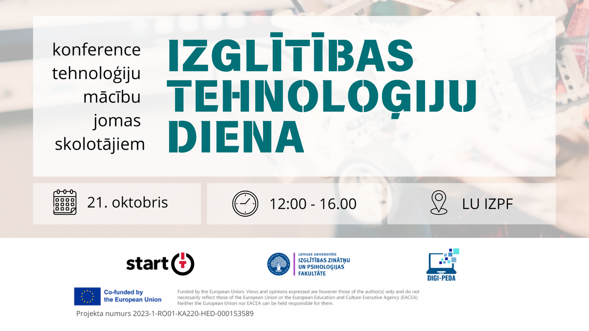 Konferenci organizē LU Izglītības zinātņu un psiholoģijas fakultāti projekta “DigiPeda” ietvaros, sadarbojoties arī ar IT Izglītības fondu.
