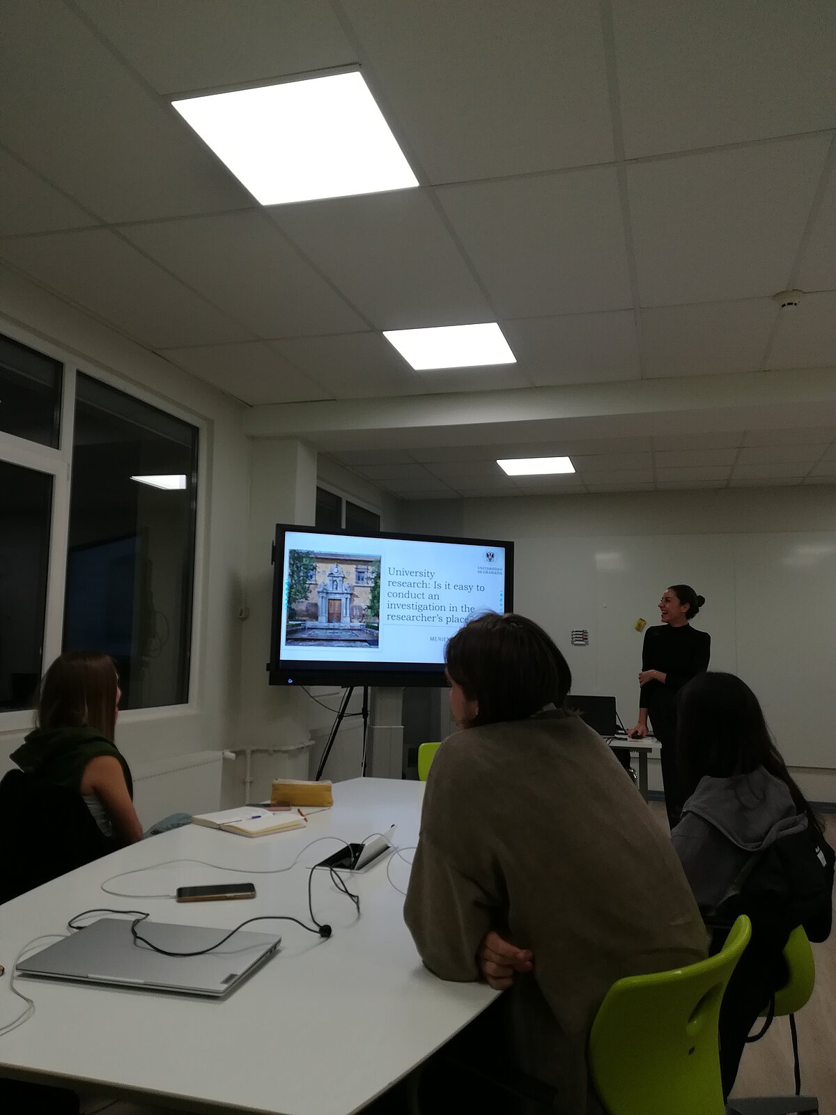 Topošie angļu valodas skolotāji savukārt padziļināti varēja uzzināt par pētījuma īstenošanas procesu, metodoloģiju, datu vākšanas veidiem un pētījuma pamatprincipiem. Vieslektore teorētiskos aspektus ilustrēja ar piemēriem no saviem lietišķajiem pētījumiem