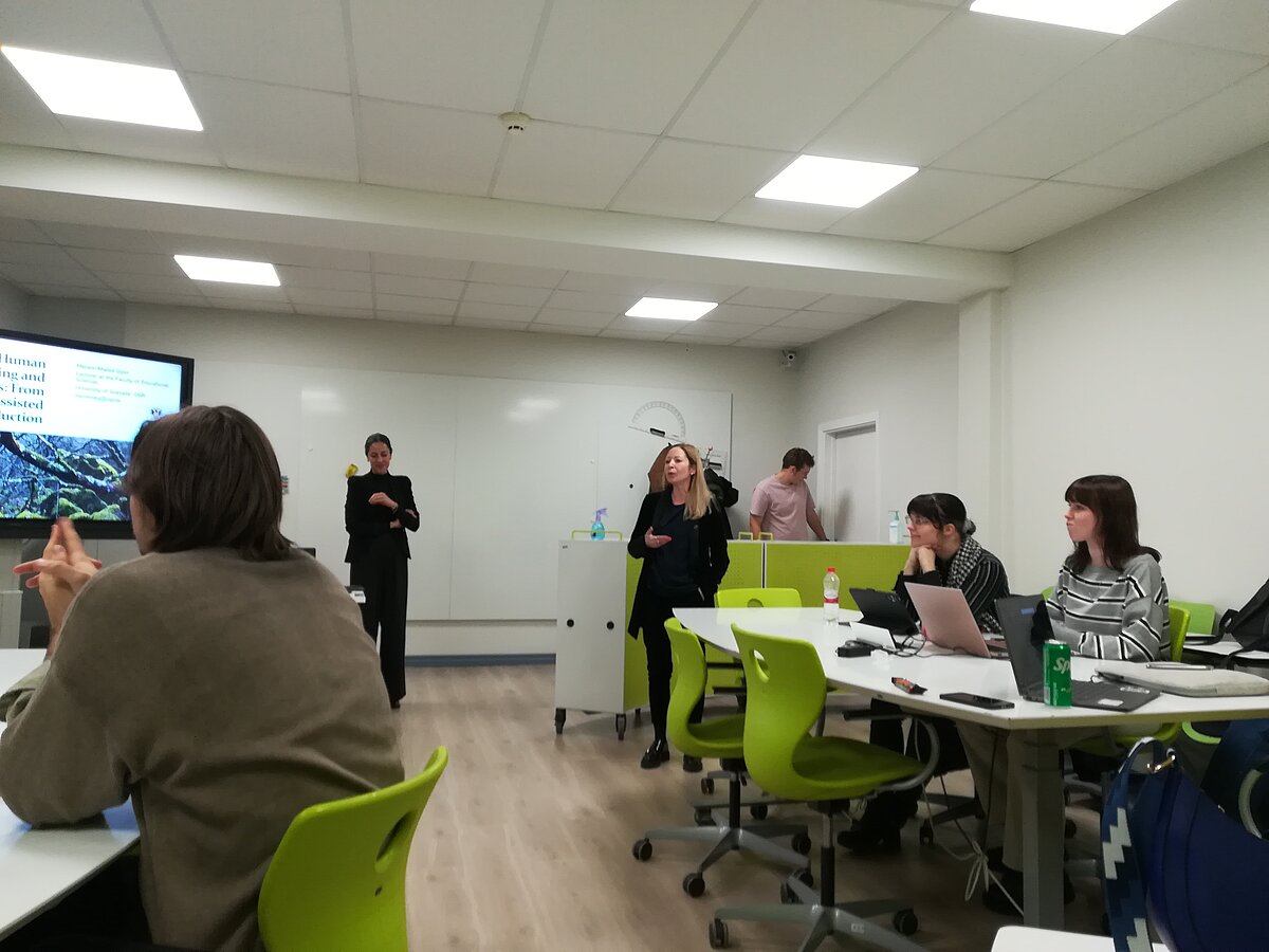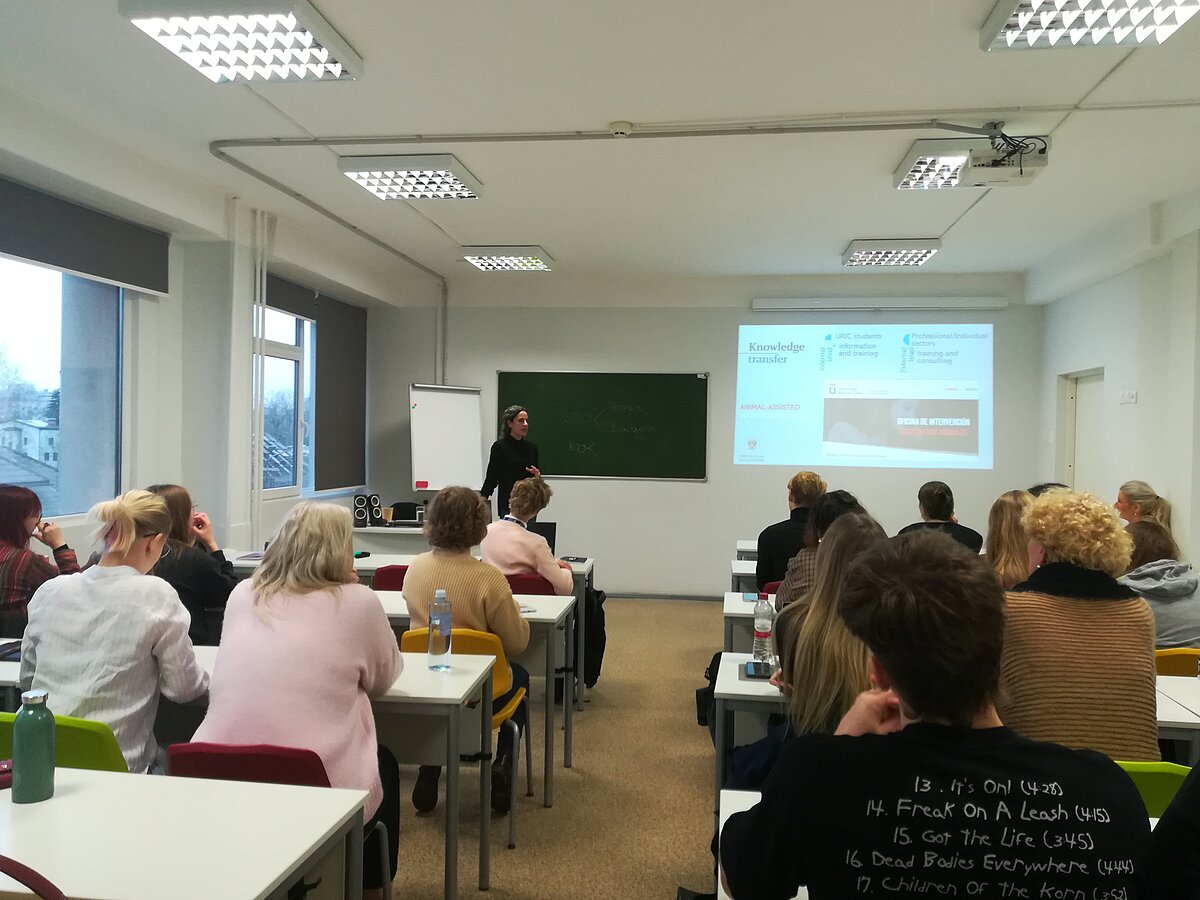 Internacionalizāciju mājās vizītes laikā piedzīvoja arī studenti. 1. kursa psiholoģijas studenti piedalījās vieslekcijā, kurā tika iepazīstināti ar diviem starpdisciplināriem pētījumiem. Pirmais no tiem bija veltīts terapijas suņu lomai studentu stresa, trauksmes un depresijas mazināšanai divās Spānijas universitātēs. Otrais bija kvalitatīvs pētījums kādā no Spānijas cietumiem, analizējot vardarbīgas uzvedības cēloņus ieslodzījuma vietā.